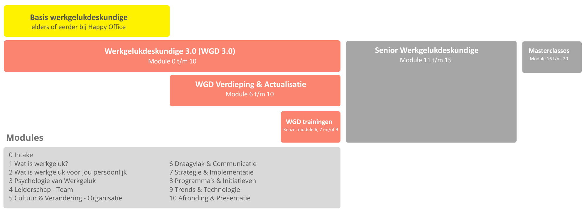 Werkgeluk is allang geen los thema meer. Organisaties die werkgeluk serieus nemen, zien minder verzuim en verloop, meer betrokkenheid en betere samenwerking. Maar dat vraagt om meer dan goede bedoelingen of losse interventies. Het vraagt om professionals die werkgeluk strategisch, duurzaam en organisatiebreed kunnen toepassen.